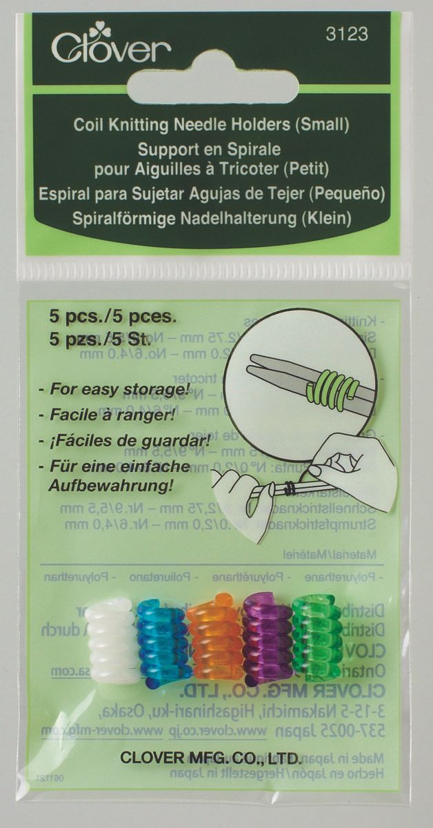 Der Halter windet sich um die Stricknadeln und sichert so dass keine Nadel verloren geht.