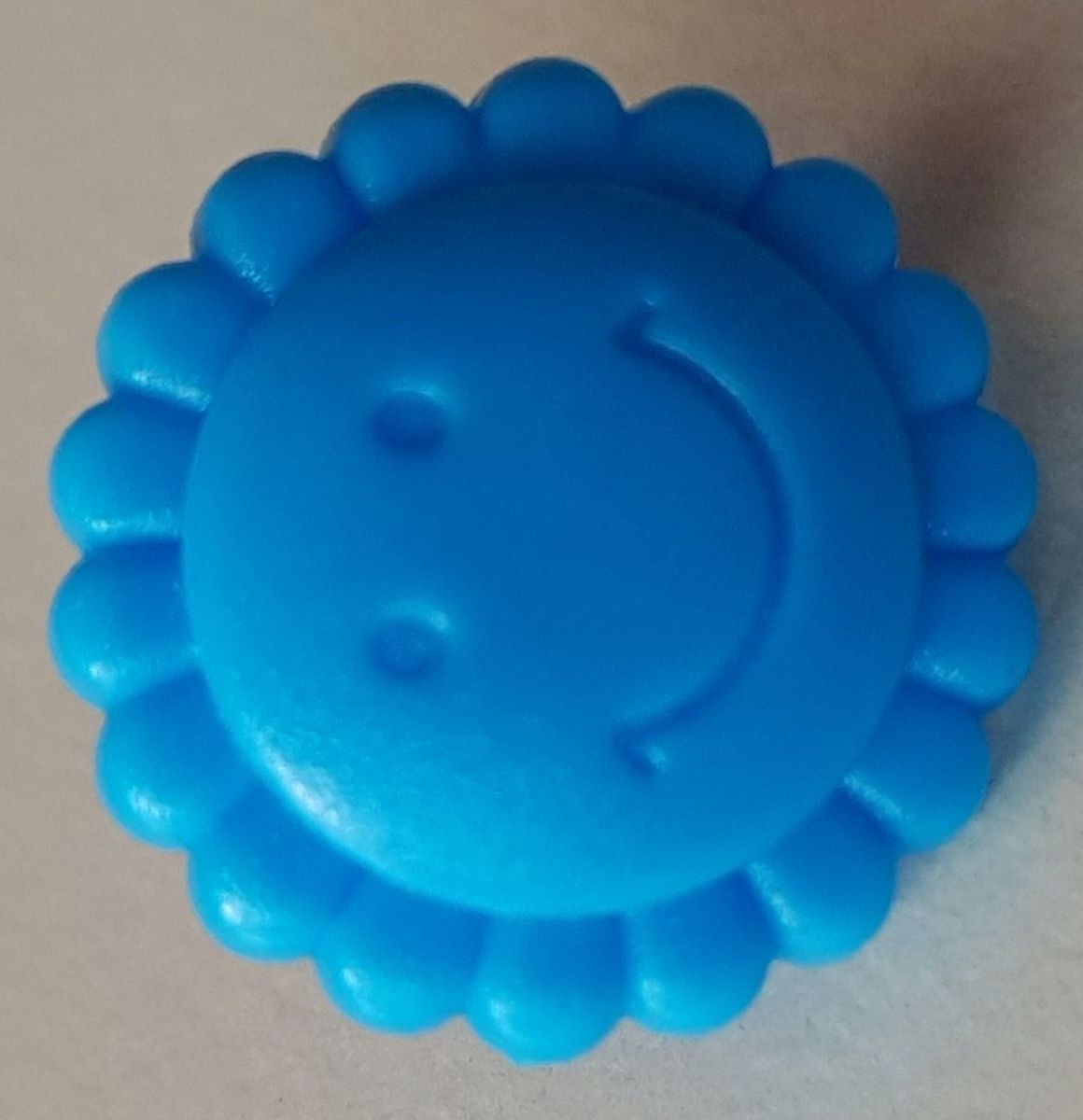 Diese Kunststoffknöpfe im Blumendesign mit dem Smiley in der Mitte machen gleich gute Laune!