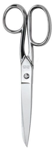 Nähschere in Standardqualität mit einem runden und einem langen Auge. Die Blätter sind außen vernickelt, innen geschliffen.