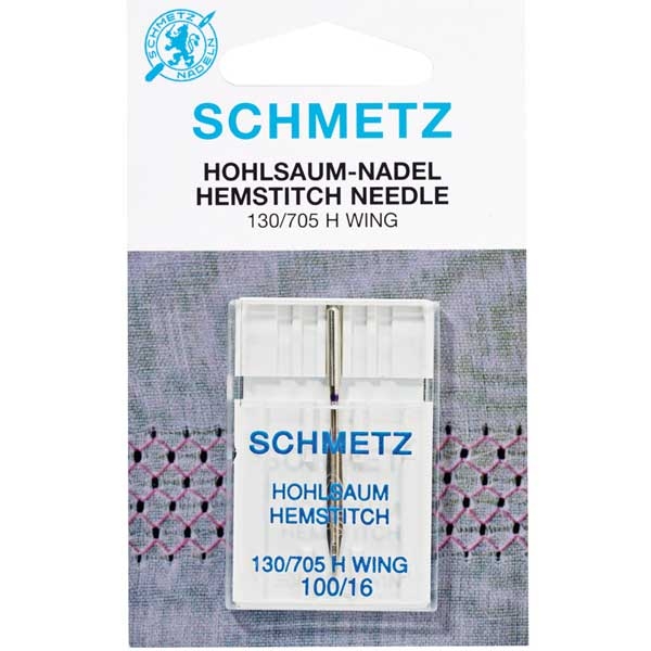 Herstellerinformationen "Nähmaschinennadel Schmetz Hohlsaum 130/705H WING; Stärke 100"