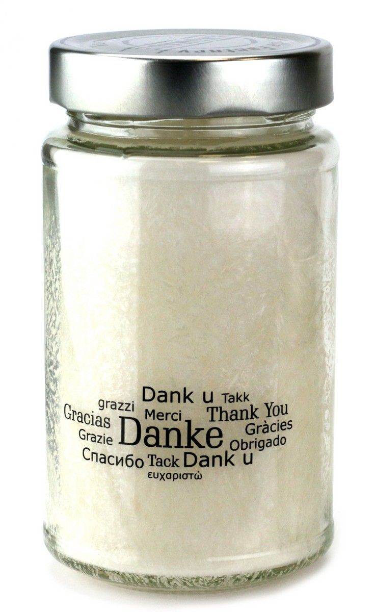 Das Sterarin der Kerze stammt aus nachhaltigem Anbau gemäß RSPO Mass Balance und verbrennt mit einer rußarmen Flamme sauber ab.
