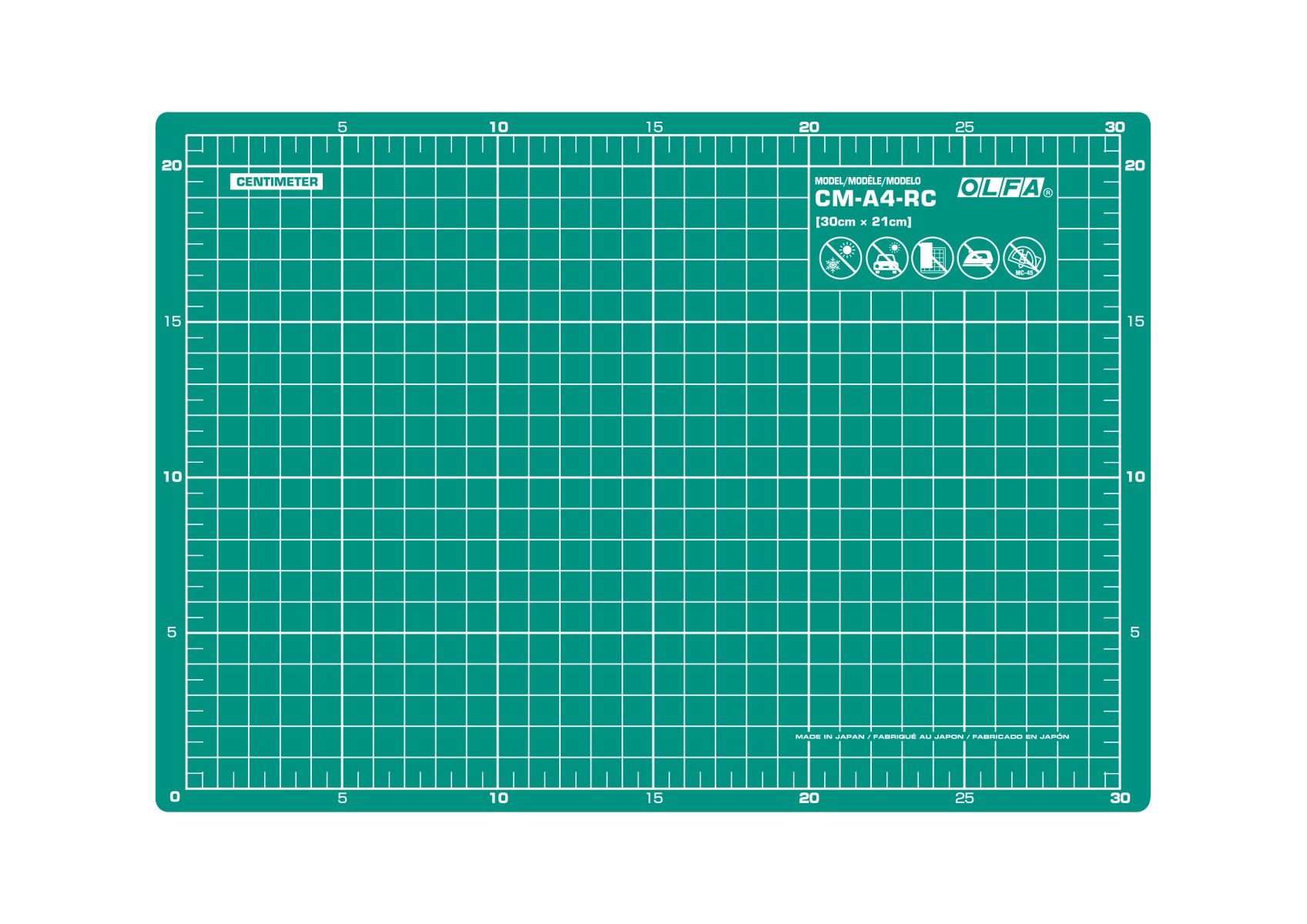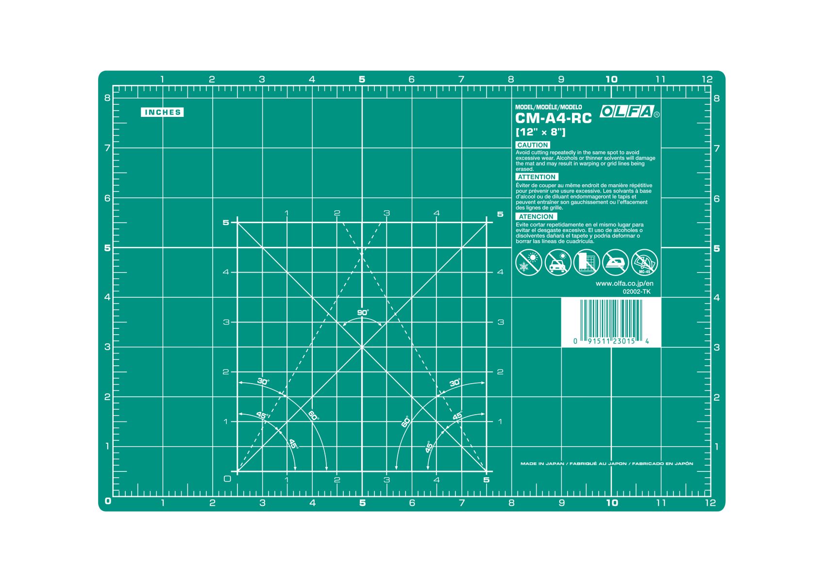 Herstellerinformationen "Olfa Schneidematte mit cm/inch-Maßeinteilung verschiedene Größen, DEHP-frei"