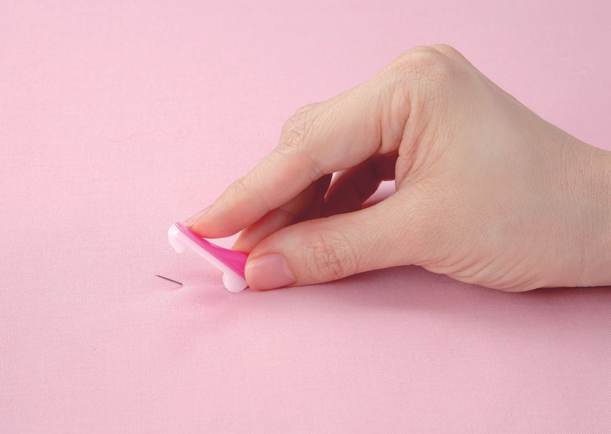Die gebogene Form der Nadeln erleichtert außerdem das Anheben und Halten der Stofflagen.