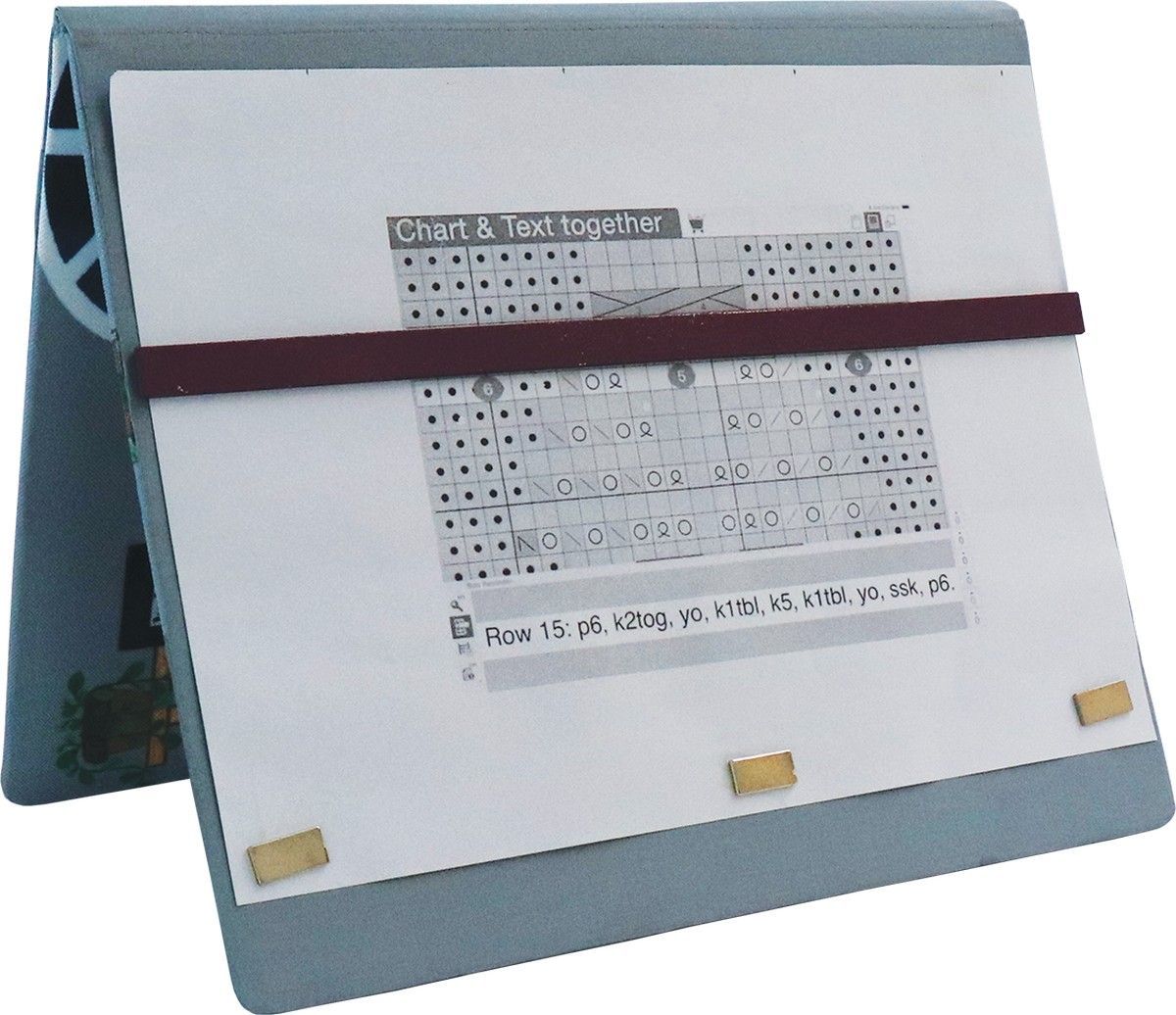 Eine unerlässliche Hilfe für alle Stricker, um während des Arbeitens Strickmuster und Anleitungen immer im Blickfeld zu haben. Befestigen Sie einfach Ihre Anleitungen/Muster mit den extrastarken Magneten an der Mappe. Nach getaner Arbeit, können Sie die Mappe einfach mit dem Druckverschluss an der Außenseite fest verschließen und Ihre Anleitung dort sicher aufbewahren. Außerdem hat die Knitpro-Mappe noch ein praktisches Aufbewahrungsfach für Diagramme und Muster und einen langen Magnetstreifen als Zeilenmarkierer.