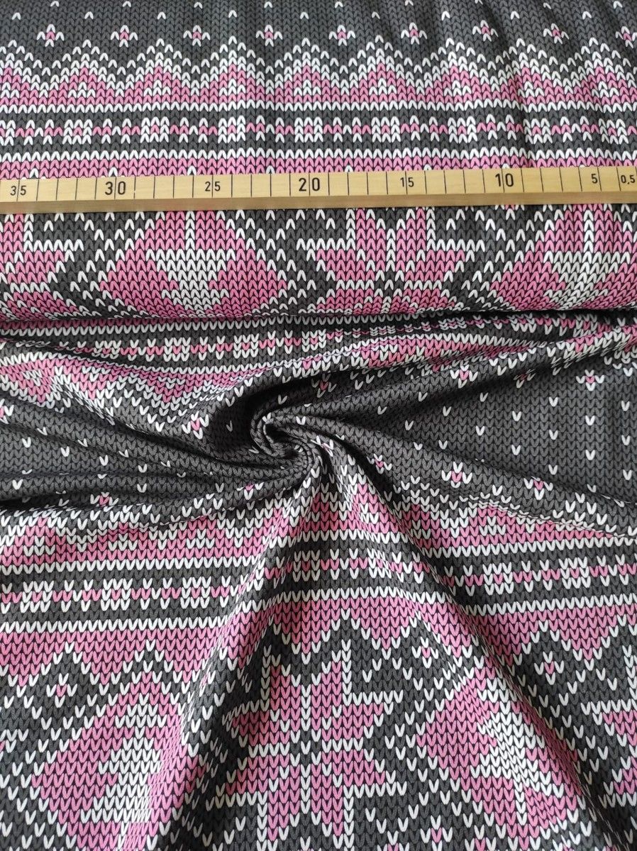 Der French Terry mit dem hübschen Norweger-Strickprint ist nur leicht angerauht. Der ideale Stoff für alle die Norwegermuster lieben!