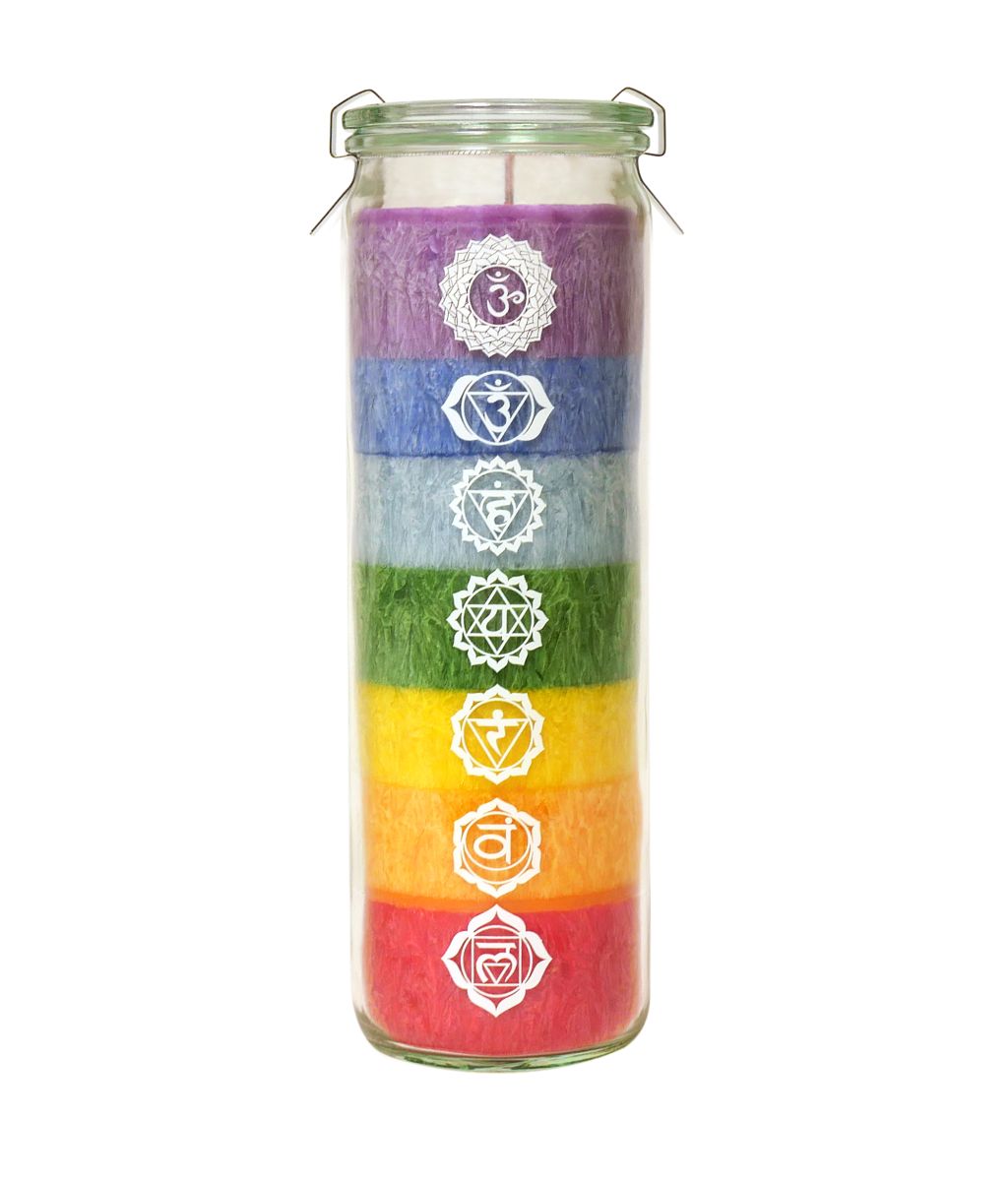 Produktinformationen "Regenbogen Kerze von Candle Factory im Glas ohne Duft Farbreihenfolge Chakra"