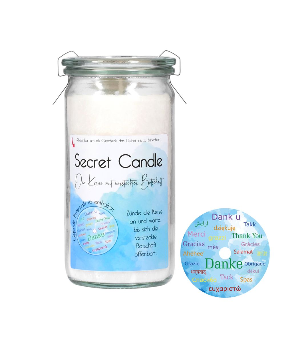 Herstellerinformationen "Secret Candle von Candle Factory im Mini-Jumbo Glas mit geheimer Botschaft"