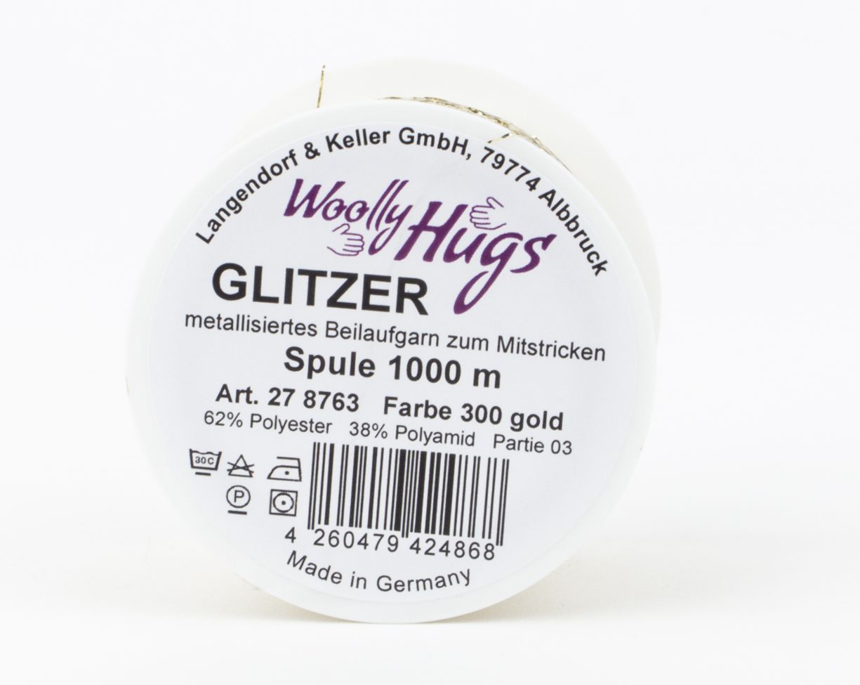 Herstellerinformationen "Woolly Hugs Glitzer, 62% Polyester, 38% Polyamid, 1000 m"